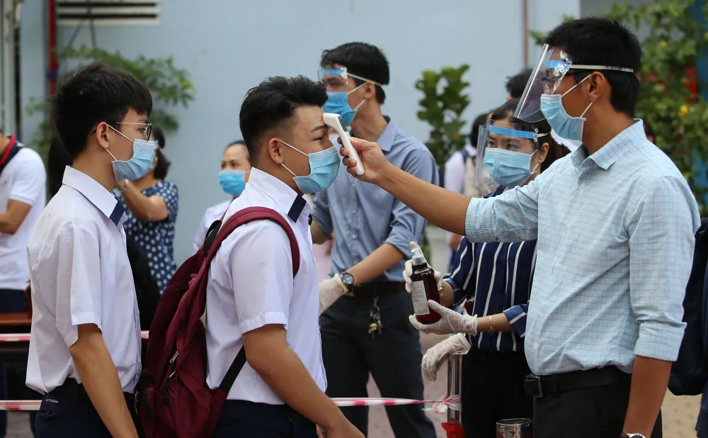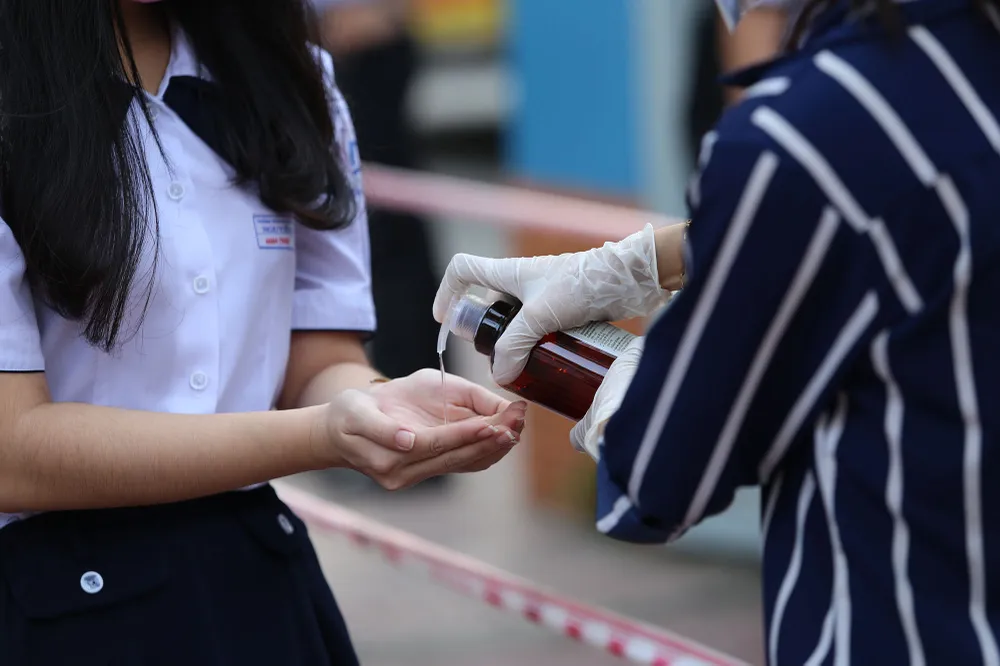 “Tất cả mọi người vào trong trường cũng đều được đo thân nhiệt và rửa tay. Hiện trường có 36 bồn rửa tay, đảm bảo tỉ lệ 30 người sử dụng một bồn. Sắp tới, hội phụ huynh sẽ lắp thêm 24 bồn rửa tay di động bên ngoài” - thầy Phú nói.