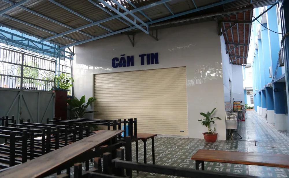 Khu vực căn tin trường đóng cửa để đảm bảo phòng dịch COVID-19.