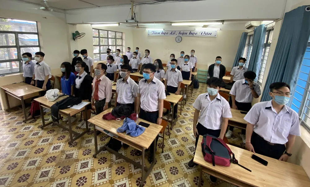 Sáng 4-5, hơn 170.000 học sinh ở hai khối 9 và 12 đang theo học tại các trường THCS, THPT, trung tâm giáo dục thường xuyên, giáo dục nghề nghiệp - giáo dục thường xuyên công lập trên địa bàn TP.HCM trở lại trường học.