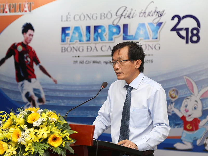 Trong bài phát biểu tại buổi lễ, ông Nguyễn Đức Hiển, Phó Tổng Biên tập báo Pháp Luật TP.HCM, Trưởng Ban tổ chức giải Fair Play 2018, nhấn mạnh: “Giải Fair Play luôn tôn vinh lối chơi đẹp, những hành vi cao thượng, trong sáng, mang lại lợi ích cho bóng đá và cho xã hội”.