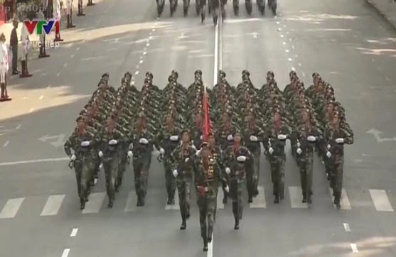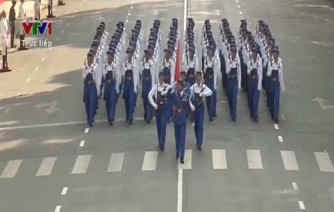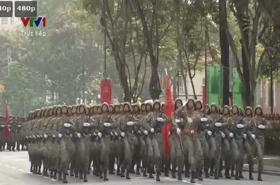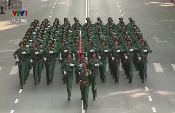 Đoàn lực lượng vũ trang Quân đội nhân dân Việt Nam tiến vào lễ đài, điđầu là xe chỉ huy do Trung tướng Bế Xuân Trường, Phó Tổng tham mứu trưởng Quân đội nhân dân Việt Nam dẫn đầu.