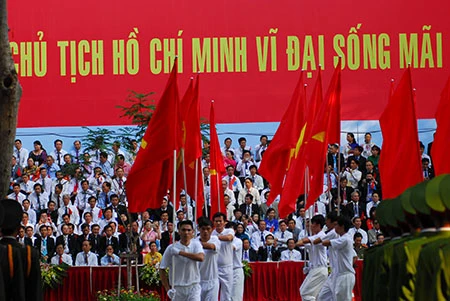 Biểu tượng quốc kỳ nước CHXHCN Việt Nam đi dẫn đầu cuộc diễu hành. Ảnh: HTD