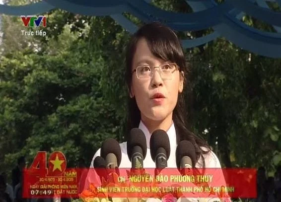 7 giờ 50 phút: Thanh niên Nguyễn Đào Phương Thúy, sinh viên năm 4, ĐH Luật TP.HCM, đại diện thế hệ trẻ phát biểu: