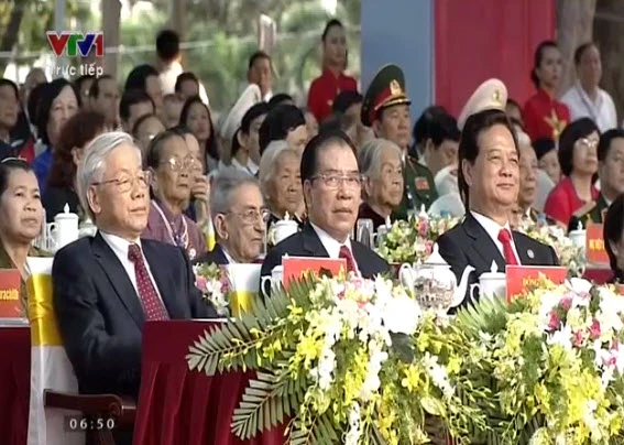 Nguyên Tổng bí thư Nông Đức Mạnh, Tổng bí thư Nguyễn Phú Trọng và Thủ tướng chính phủ Nguyễn Tấn Dũng tại buổi đại lễ kỷ niệm 30/4.