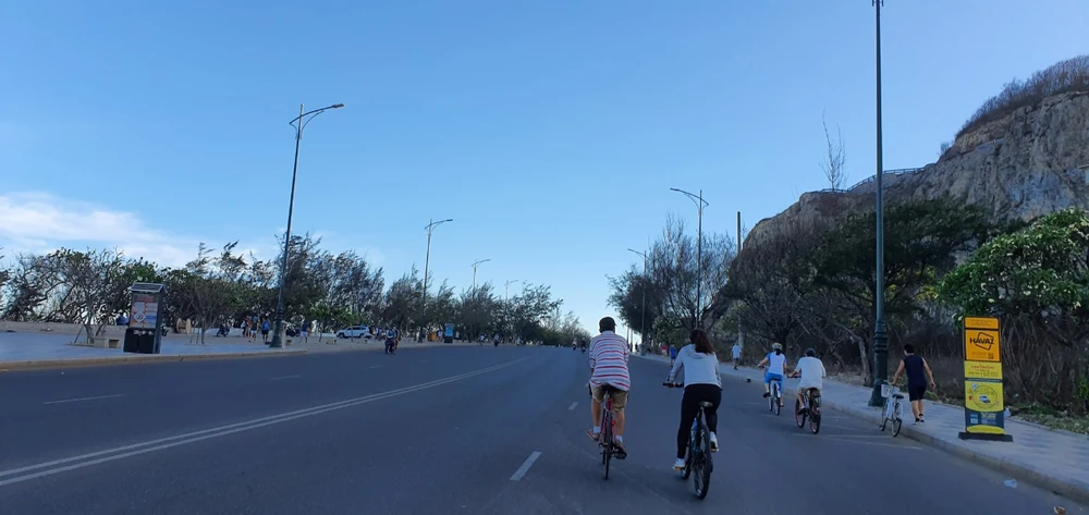 Khu vực công viên gần Tượng Chúa dang tay đến công viên dọc đường Thùy Vân người dân vẫn đi bộ, đạp xe…
