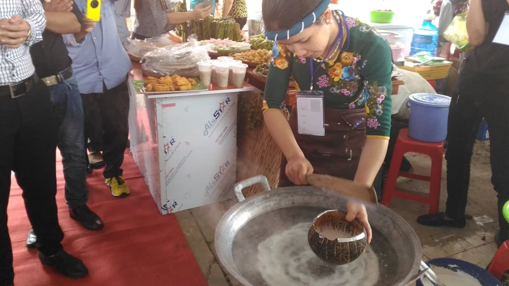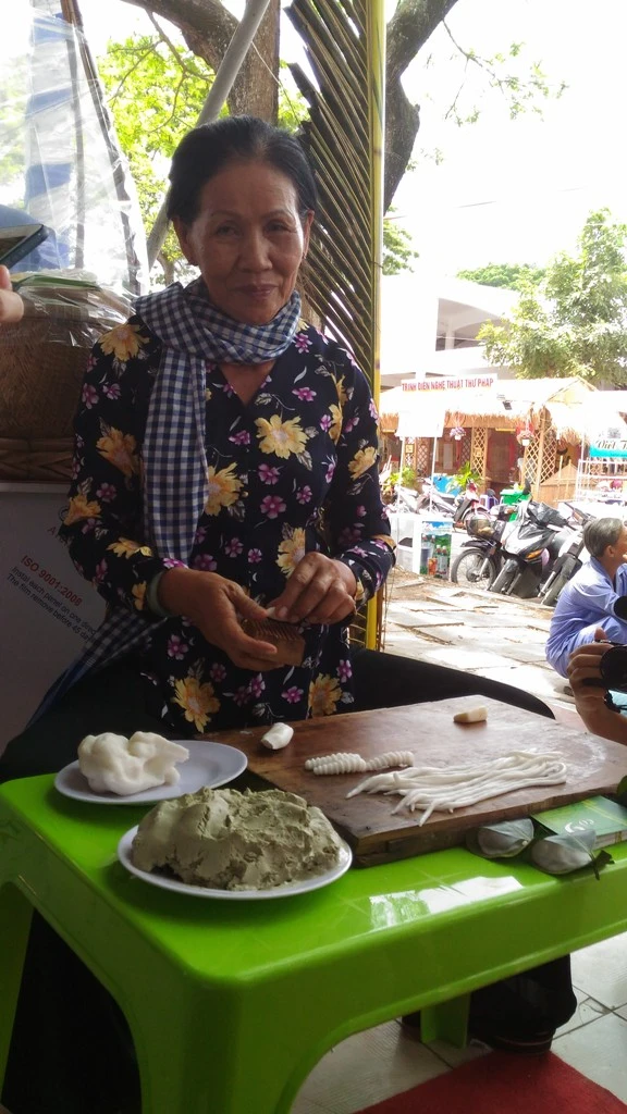 Trình diễn làm bánh lá mít, bánh tằm. Ảnh: N.NAM