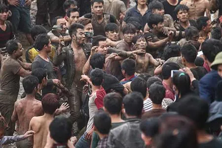 Thanh niên lao vào ẩu đả ở lễ hội cướp phết Hiền Quan, Phú Thọ. Ảnh: V.THỊNH