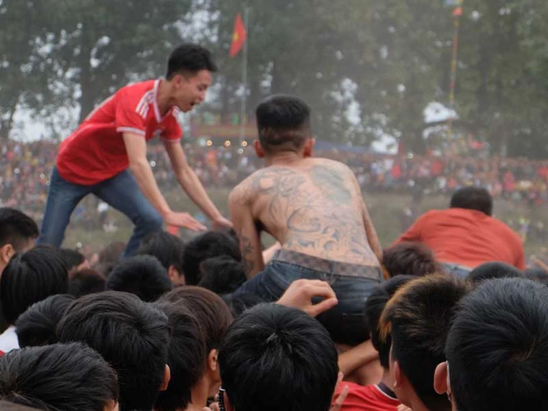 Hình ảnh phản cảm tại lễ hội phết ở xã Hiền Quan, huyện Tam Nông, Phú Thọ. Ảnh: PHI HÙNG