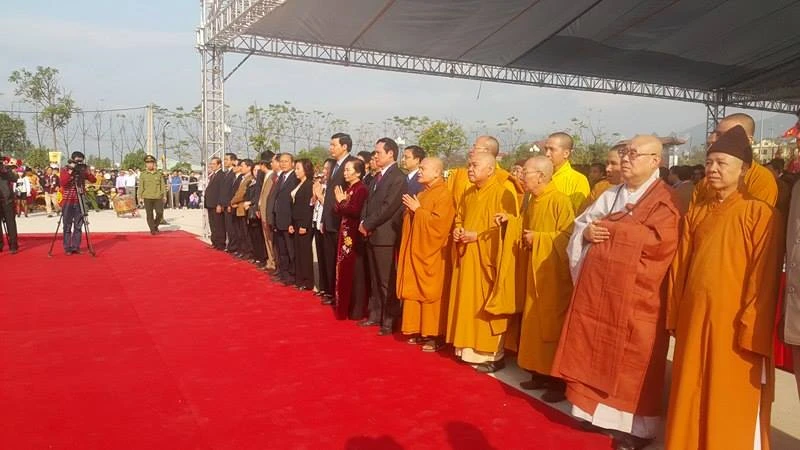 Lãnh đạo UBND tỉnh Quảng Ninh, UBND TP Uông Bí và lãnh đạo Hội Phật giáo chuẩn bị làm lễ khai mạc lễ hội khai xuân Yên Tử năm 2017.