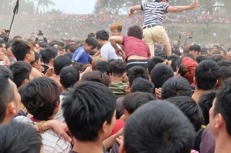 Thanh niên giẫm đạp lên đầu người khác để cướp Phết. Ảnh: Phi Hùng