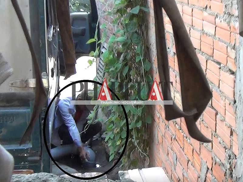 Tài xế xe hút hầm cầu lén lút nối ống, xả chất thải ra kênh. Ảnh: Nguyễn Tân