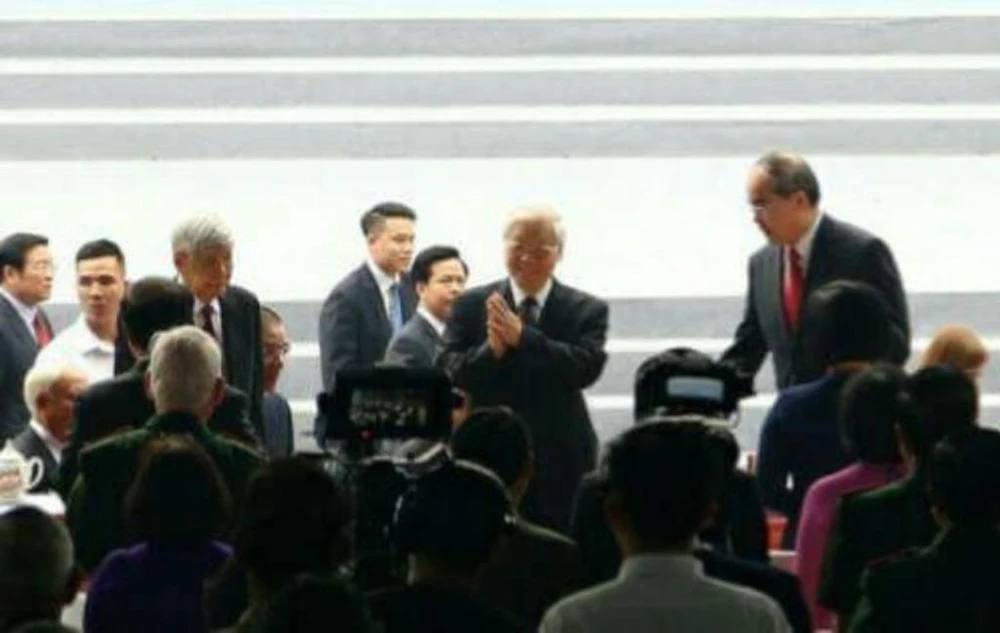 Tổng Bí thư Nguyễn Phú Trọng, nguyên Tổng Bí thư Lê Khả Phiêu tại lễ kỷ niệm. Ảnh: HOÀNG GIANG
