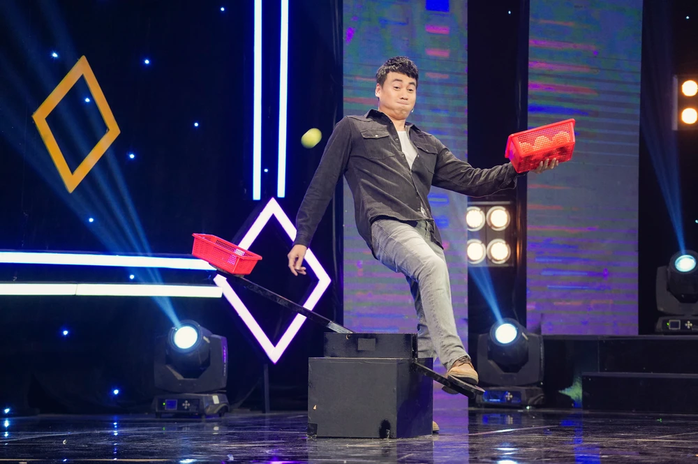 Đội Lê Minh – Ngọc Thuận tự tin trong vòng ba phút sẽ hứng được tám quả bóng, còn đội Anh Tuấn – Trùng Dương chấp nhận thử thách bảy quả bóng.