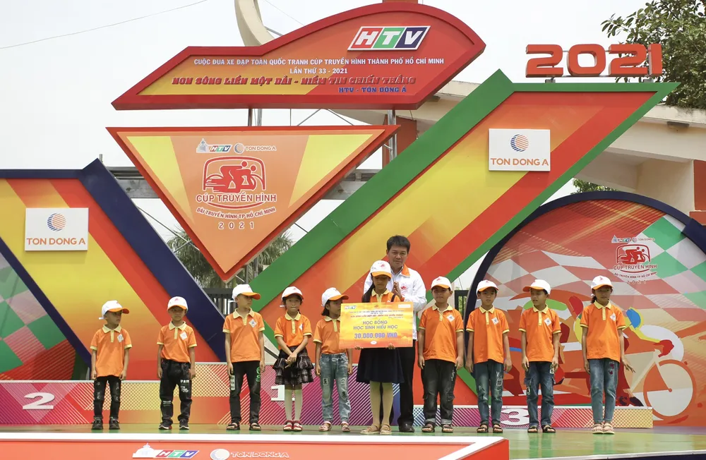 Ông Nguyễn Mạnh Hoàng đại diện nhà tài trợ Tôn Đông Á trao học bổng 30 triệu đồng cho học sinh trường Tiểu học Thanh Thủy, Nghi Sơn, Thanh Hóa.