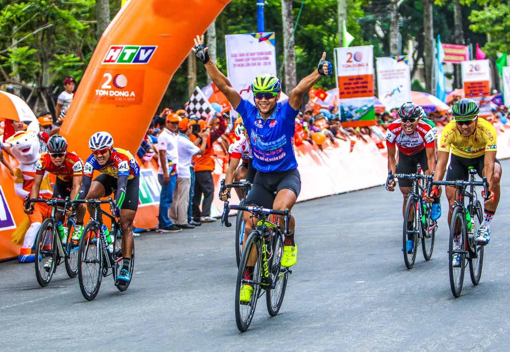 Với sáu ngón tay giơ cao mừng chiến thắng, tay đua người Hóc Môn đánh dấu lần thứ 6 anh vượt qua đại kình địch Nguyễn Thành Tâm, qua đó vững vàng trên ngôi đầu giải thưởng áo xanh dành cho các tay đua nước rút.