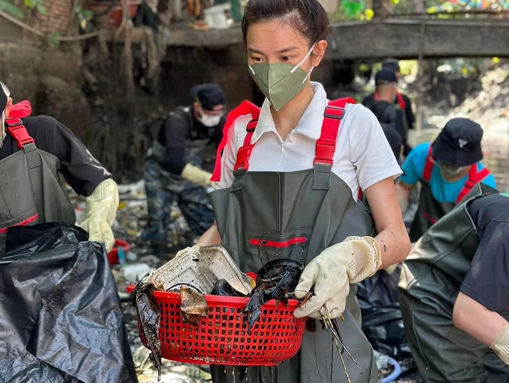Sáng 29-3, Hoa hậu Thùy Tiên đã cùng tham gia dọn rác với Biệt đội Sài Gòn Xanh tại một con kênh ở quận Tân Bình.