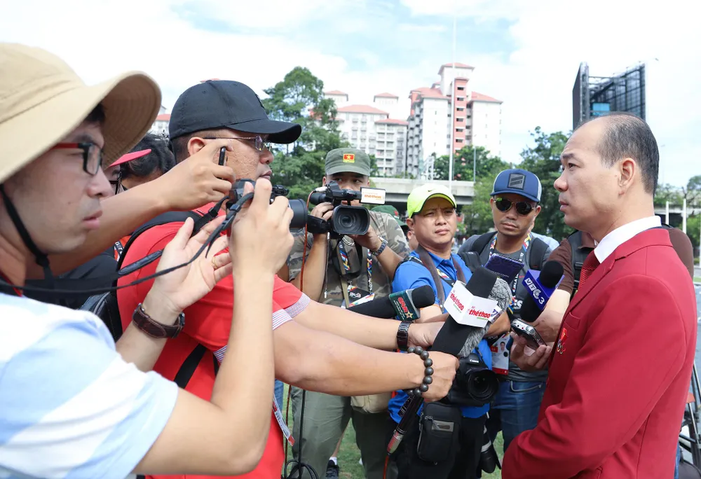 Phó đoàn Hoàng Quốc Vinh bật mí mọi công tác chuẩn bị SEA Games 29 của đoàn TTVN đã hoàn tất. Tất cả chờ tin vui chiến thắng của các VĐV. ẢNH: PHẠM HUY