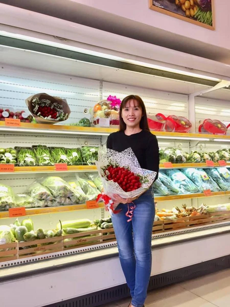 “Năm nay Chợ Phố Fresh Food tung ra mẫu bó hoa dâu tây. Dâu được nhập từ Mỹ và New Zealand cùng hộp quà trái cây hình trái tim như Táo của Hàn Quốc hay Cherry của Úc… Ngoài ra, chúng tôi cũng cung cấp thêm mẫu bó hoa rau với nguồn hàng là rau hữu cơ tại Đà Lạt để các quý ông có thể tặng cho vợ, người yêu, mẹ… trong ngày lễ này”.