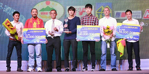 Ba cá nhân và tập thể về đầu trong đêm trao giải Fair Play. Ảnh: XUÂN HUY