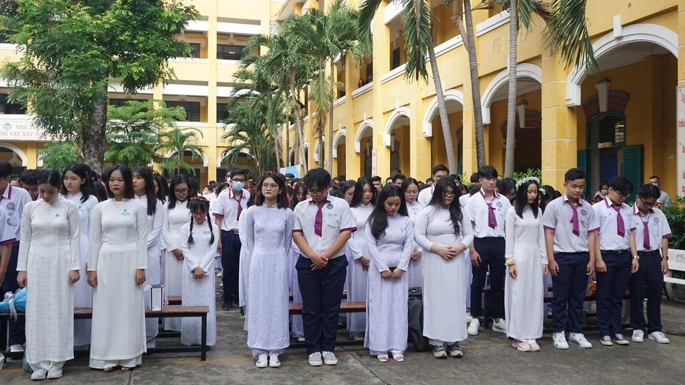 Tại buổi lễ, sau nghi thức chào cờ, mọi người đã dành một phút tưởng niệm những mất mát, đau thương đã diễn ra trong đại dịch, từ đó càng trân trọng hơn giây phút quý giá ngày hôm nay.