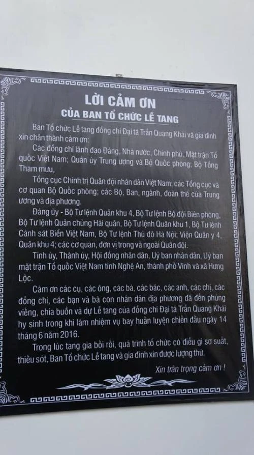 Nỗi mất mát được chia sẻ trong hàng ngàn người có mặt tại tang lễ, hàng triệu trái tim đang hướng về phi công Khải dường như vẫn không thể nhẹ đi. Thế nhưng, niềm tự hào về một chiến sĩ phi công của Quân chủng phòng không không quân Việt Nam thì cứ nhân lên mãi.