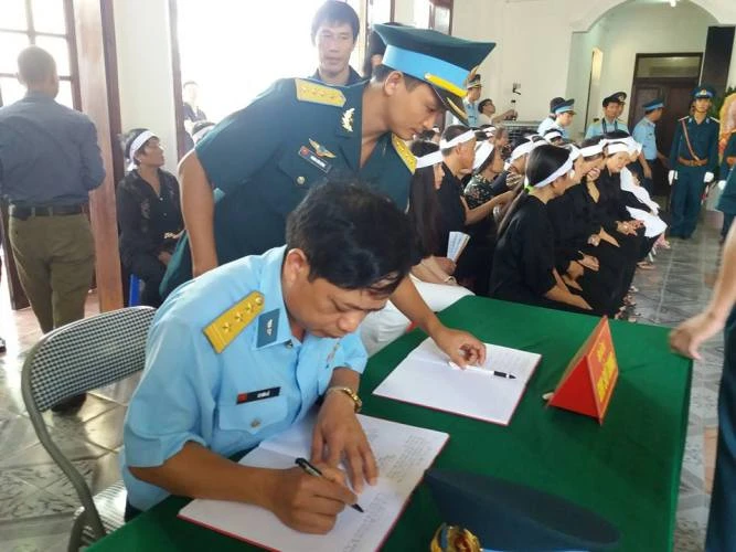 Anh Trần Quang Hùng, em trai của đại tá Khải thay mặt gia đình nói lời cám ơn lãnh đạo Đảng, Nhà nước, Bộ Quốc phòng, Quân chủng Phòng không không quân, các cơ quan hữu quan và đông đảo người dân đã đến tiễn chân đại tá Khải.