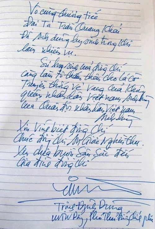 Lưu bút sổ tang của Phó thủ tướng chính phủ Trịnh Đình Dũng