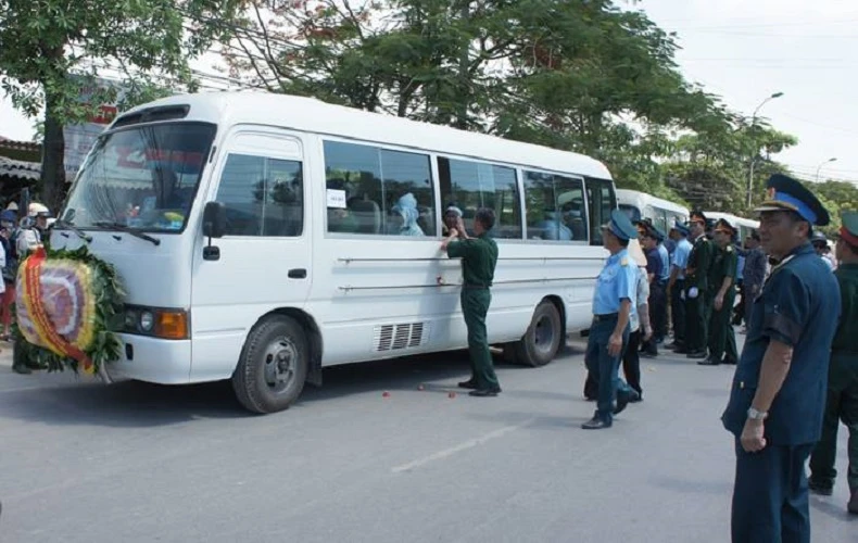 Ngay sau đó, di hài của đại tá phi công Khải được đưa ra xe. Anh sẽ được đưa về an tang tại quê nhà Bắc Giang.