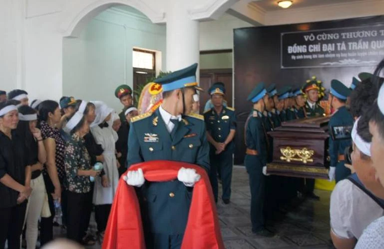 "Vĩnh biệt đồng chí. Chúng tôi hứa noi gương đồng chí hết mình phụng sự tổ quốc, đoàn kết, vươn lên xây dựng cuộc sống tốt đẹp hơn, bảo vệ vững chắc vùng trời Tổ quốc",Trung tướng Thanh kết thúc bài điều văn đầy xúc động.