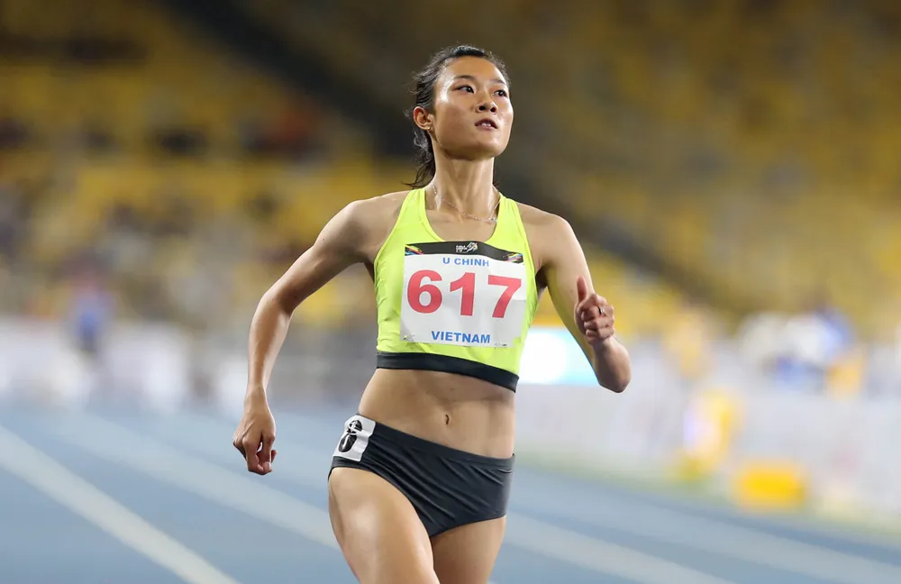 "Nữ hoàng cự ly ngắn" Lê Tú Chinh lần đầu đoạt HCB AIMAG5. ẢNH: PHẠM HUY