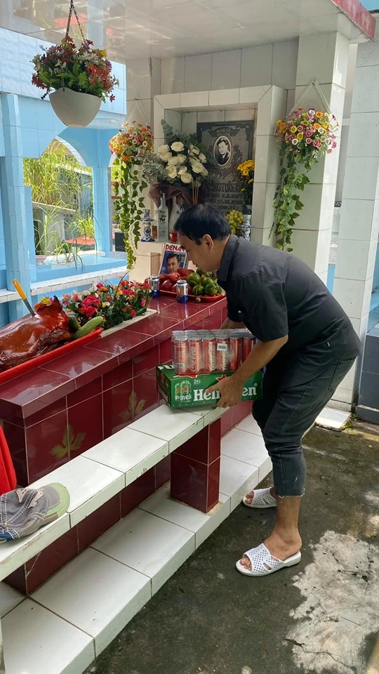 Quyền Linh bày đồ cúng bạn.