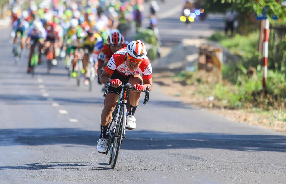 Cú tăng tốc đào thoát khỏi đoàn đông của tay đua Lê Văn Duẩn. Ảnh: PHẠM HUY