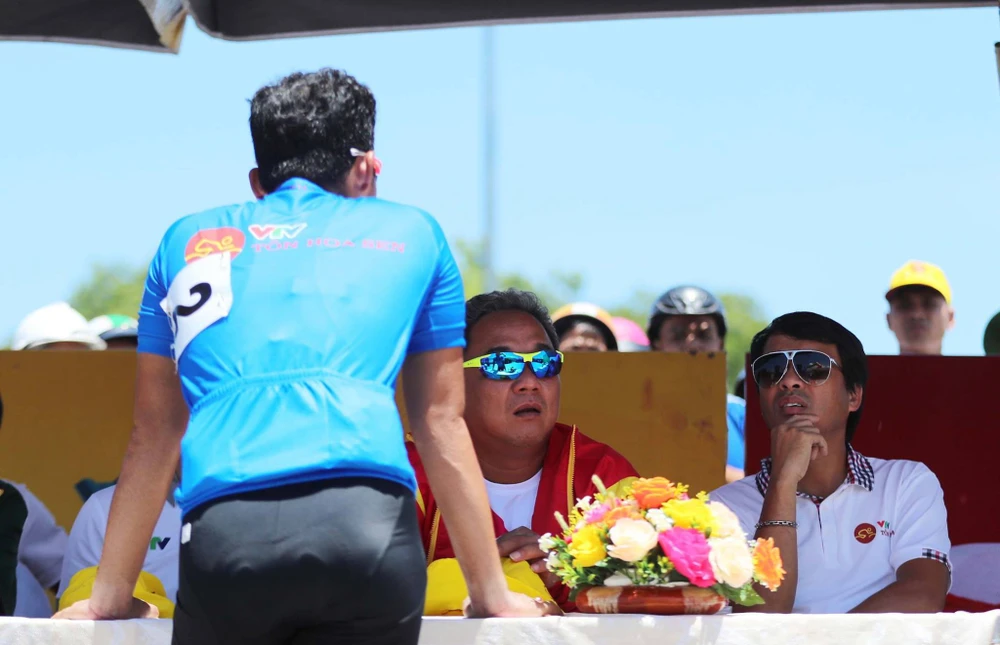 Quyết định ngay lập tức khiến tay đua đang giữ áo xanh Lê Văn Duẩn phản ứng gay gắt ngay tại buổi lễ trao giải.