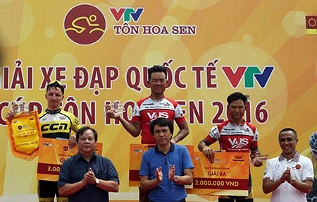 Ba tay đua chiến thắng trên bục nhận thưởng chặng 9.