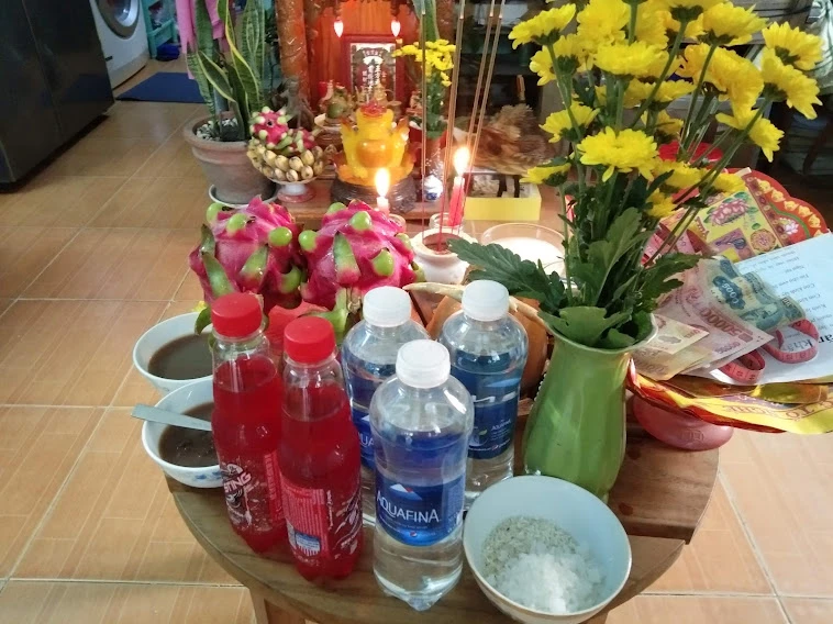 Có gia chủ cúng bánh bông lan, bánh tét |