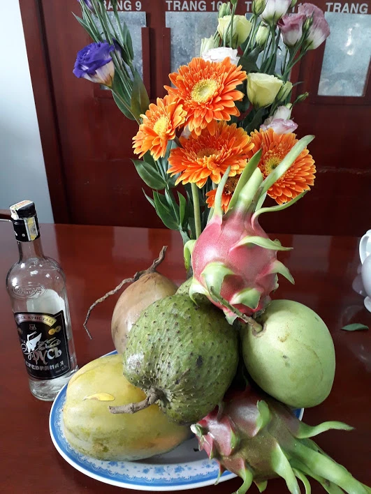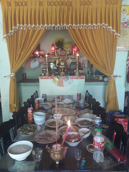 Mâm cúng trước nhà.