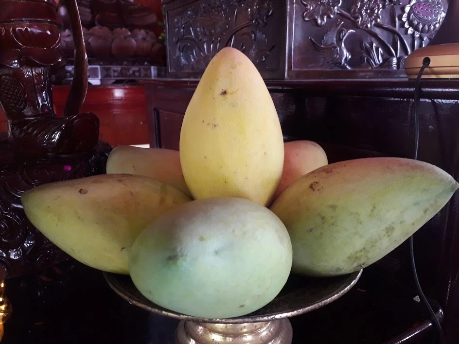 Một mâm chay cúng Phật (ảnh) gồm: đĩa ngũ quả, bánh, một lư hương, cặp đèn cầy, ba chung trà. Bình bông để bên tay phải, đĩa ngũ quả để chính giữa.
