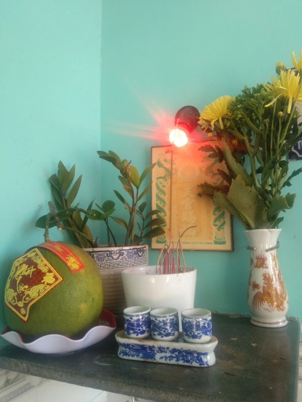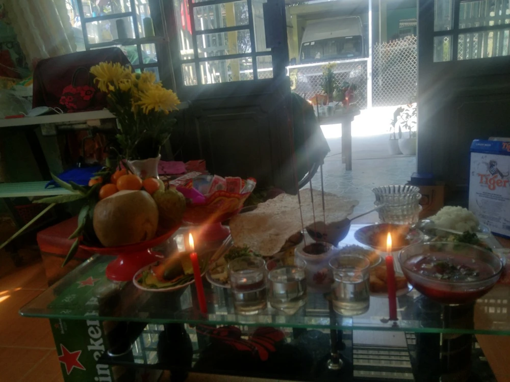 Bàn cúng chay giữa nhà