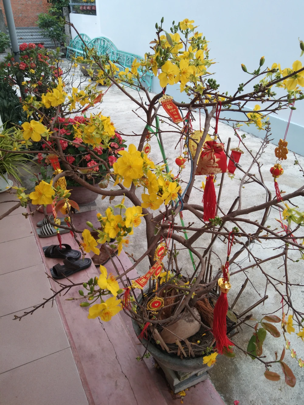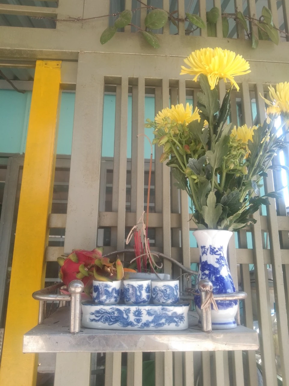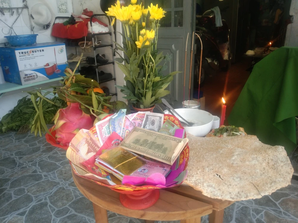 Bàn cúng chay trước sân