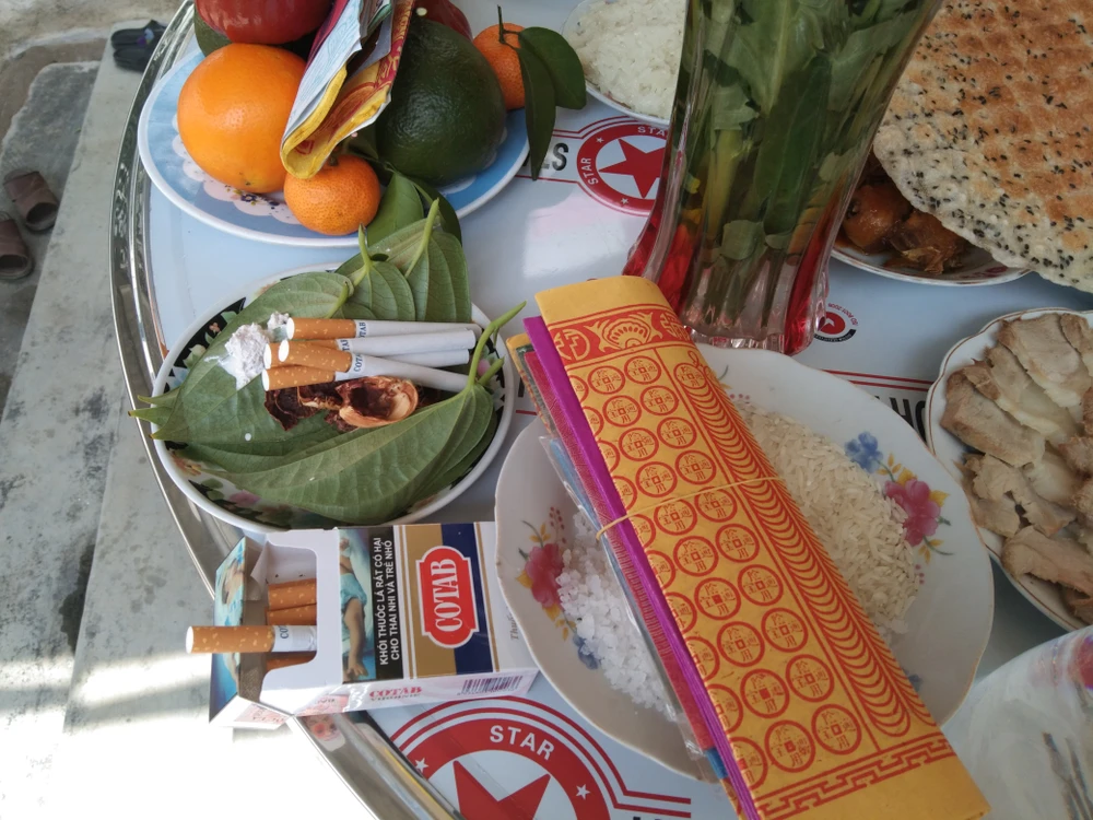 Mâm cúng mặn trước sân nhà