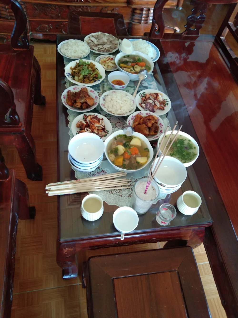 Mâm cúng mặn giữa nhà