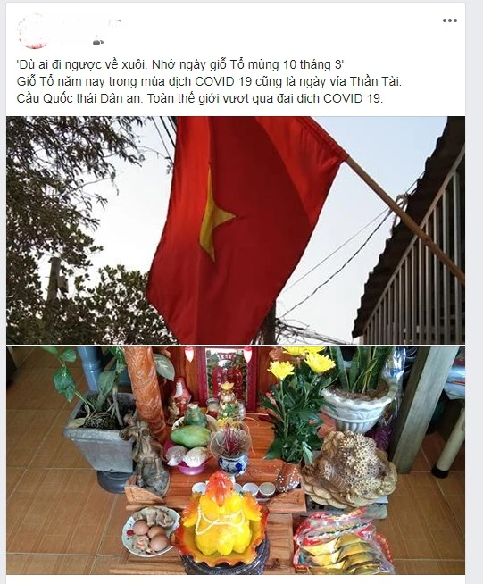Giỗ Tổ năm nay trong mùa dịch COVID 19 cũng là ngày vía Thần Tài. Cầu Quốc thái Dân an. Toàn thế giới vượt qua đại dịch COVID 19. Ảnh: Facebook