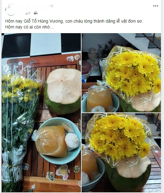 Hôm nay Giỗ Tổ Hùng Vương, con cháu lòng thành dâng lễ vật đơn sơ. Ảnh: Facebook