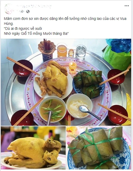 Mâm cơm đơn sơ xin được dâng lên để tưởng nhớ công lao của các vị Vua Hùng. Ảnh: Facebook