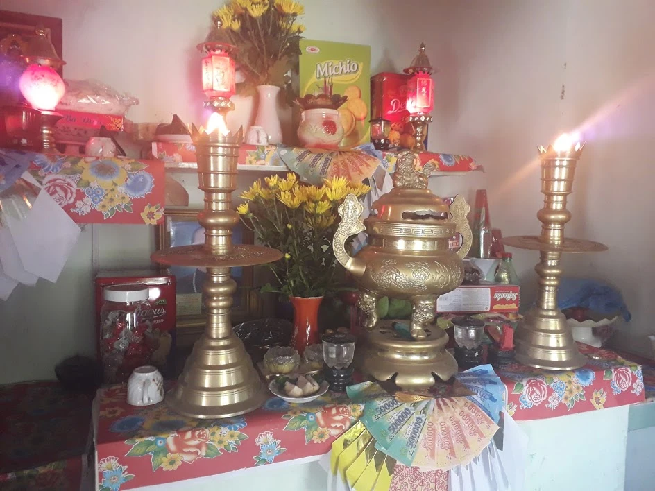 Lễ vật giống như lễ cúng gia tiên: Mâm ngũ quả, hương hoa, giấy tiền vàng mã, đèn nến, trầu cau, rượu, trà, bánh chưng (hoặc bánh tét). Cỗ mặn hoặc chay với đầy đủ các món ăn ngày tết, được chế biến thơm ngon tinh khiết, bày biện đầy đặn, trang nghiêm. Trong đó, nếu cúng mặn không thể thiếu con gà trống.