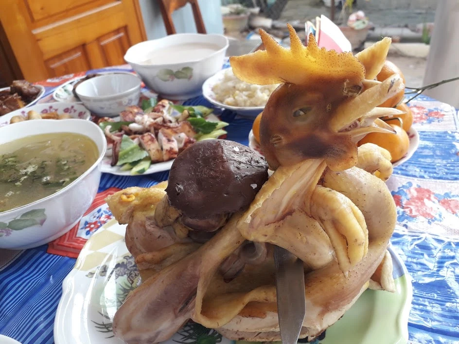 Mâm cúng mặn không thể thiếu con gà trống.