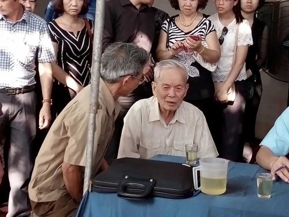 Cha của anh khải ngồi trước cổng nhà đón thi hài con trai. Thỉnh thoảng lấy tay lau nước mắt