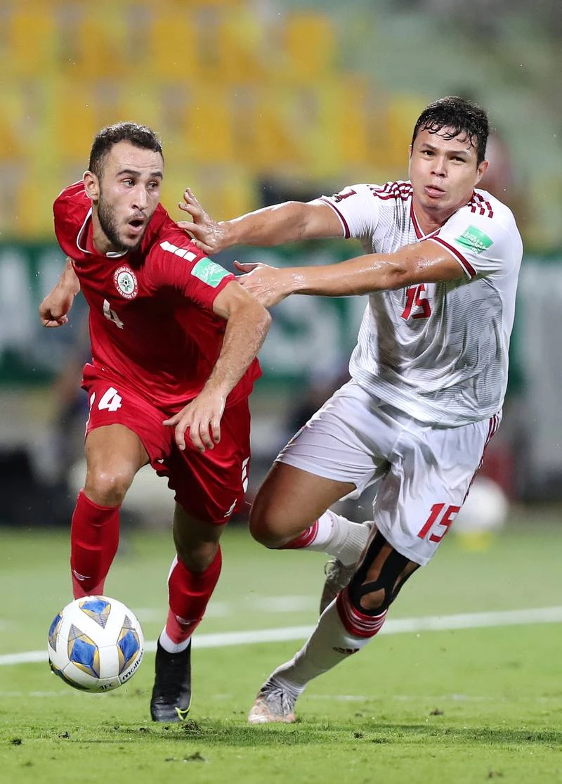 De Lima (15, UAE) bế tắc trước Lebanon. Ảnh: Getty