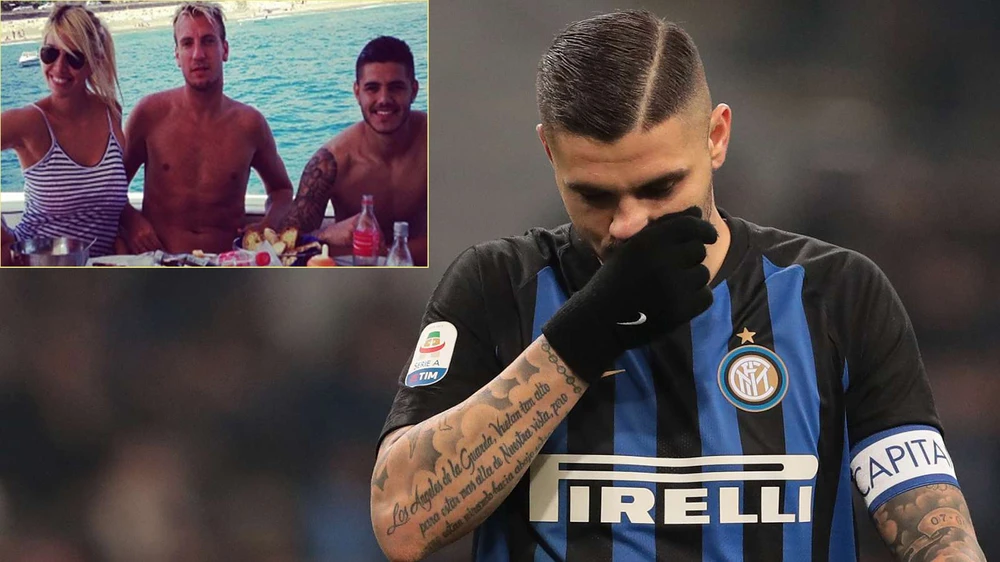 Wanna, Lopez và Icardy tại một kỳ nghỉ (ảnh nhỏ). Chân sút Inter vừa mất băng đội trưởng vì cô vợ tai tiếng Wanna. ẢNH: AP