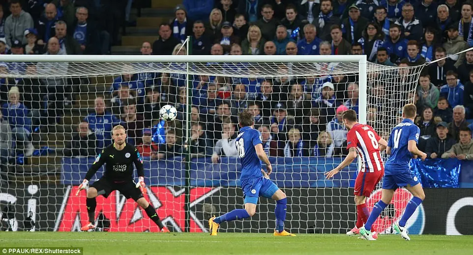 Bị dẫn bàn ngay tại sân nhà khiến cho tâm lý các cầu thủ Leicester City nặng nề, dẫn đến hang loạt tình huống mắc sai lầm. Đội khách thì cứ ung dung chơi bóng tạo ra nhiều tình huống nguy hiểm cho khung thành của Leicester City, và thế trận thuộc về Atletico Madrid đến khi hiệp một kết thúc.